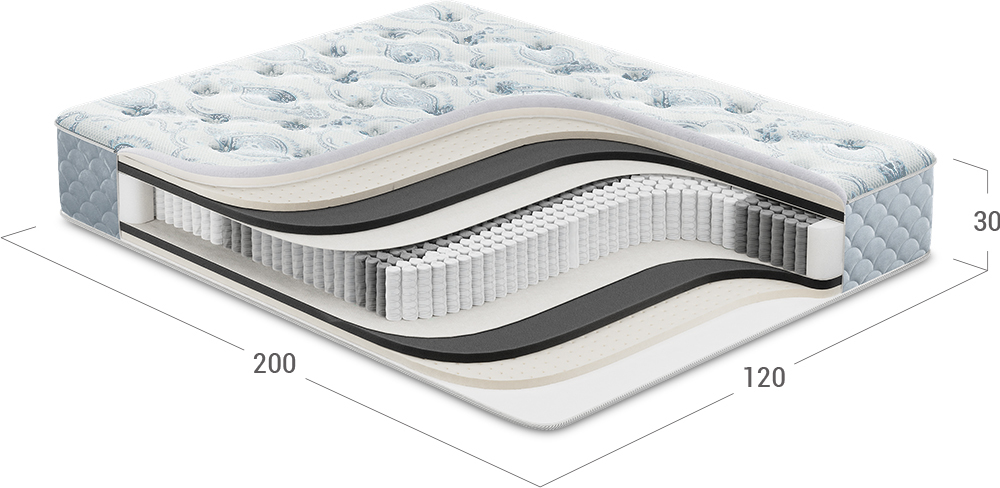 Оказывает надежную поддержку и равномерно распределяет нагрузку на поверхности спального места, подстраивается под контуры тела и помогает сохранять его правильное положение на протяжении всего времени отдыха.