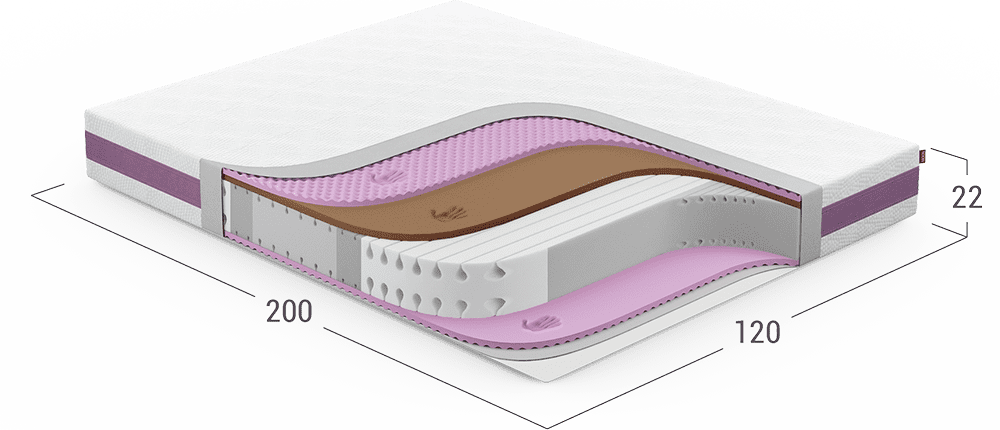 В этом матрасе для основы используется пенный материал PROFILEFOAM. Качество поддержки спины беспружинных матрасов зависит от эластичности пен. Чем выше эластичность, тем лучше поддержка спины.