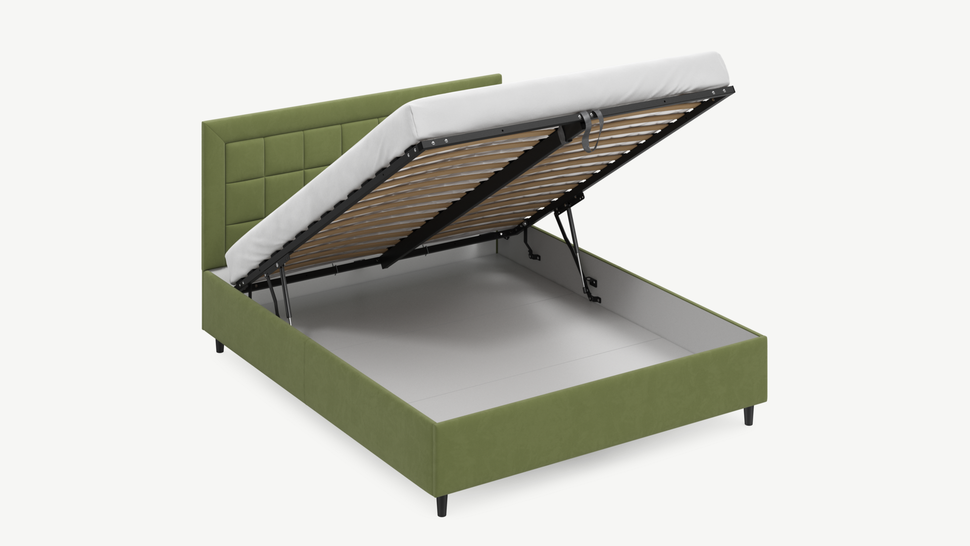 Регулируемый подъемный механизм с газовыми амортизаторами позволяет плавно и бесшумно поднимать и опускать спальное место.