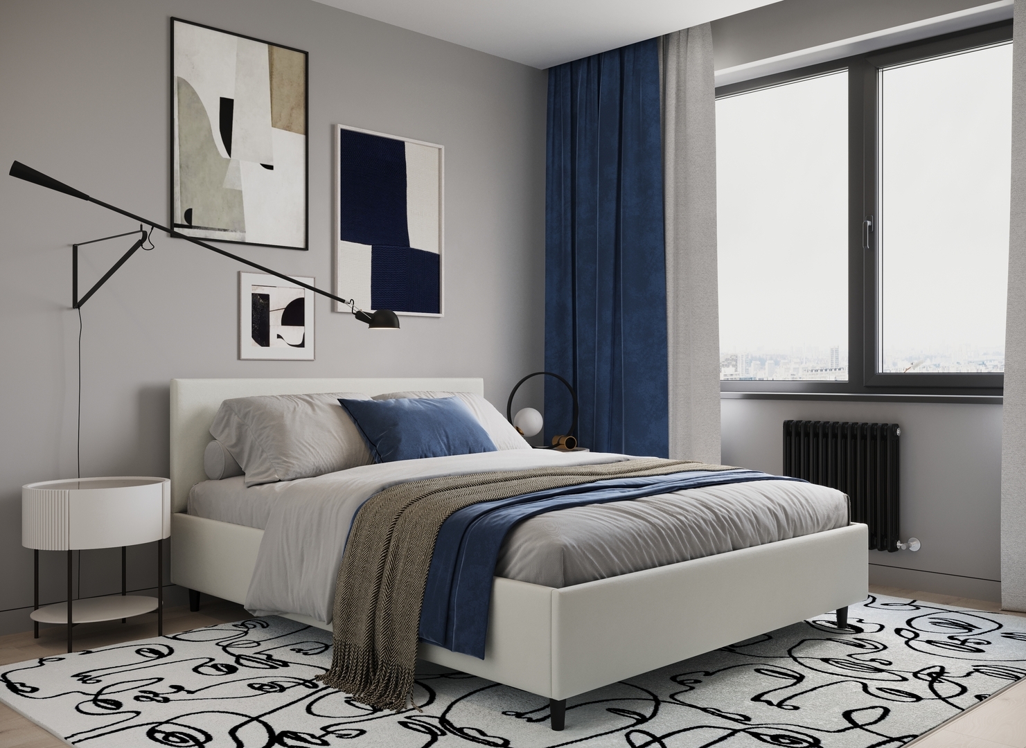 Создать гармоничный интерьер и завершить образ спальни помогут дополнительные аксессуары, например: тумбы, банкетки, подушки.
