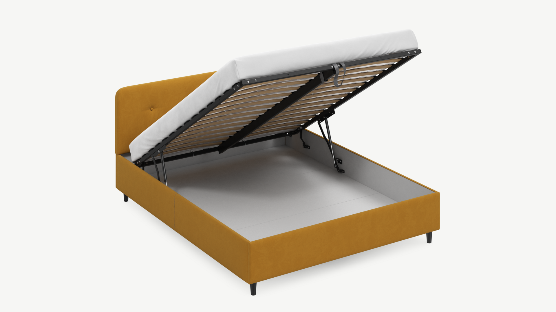 • Скрытая под основанием вместительная емкость без внутренних перегородок позволяет использовать всю площадь подкроватного пространства для хранения вещей.