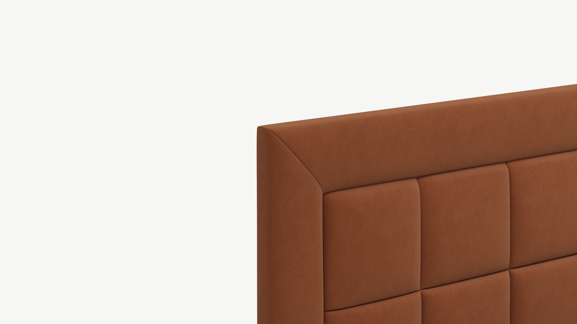 Изголовье декорировано рельефным рисунком стежки в крупный квадрат, получившим особую фактуру за счет глубины шва.