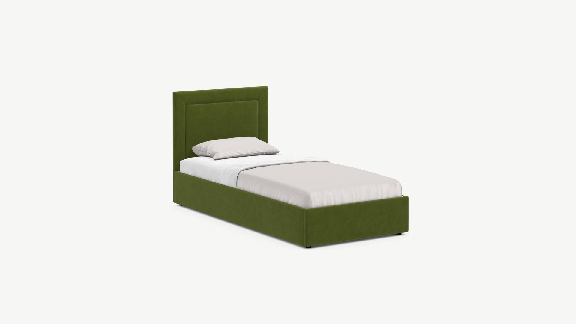 Вместительная емкость под кроватью без внутренних перегородок позволяет использовать для хранения вещей 100% пространства.