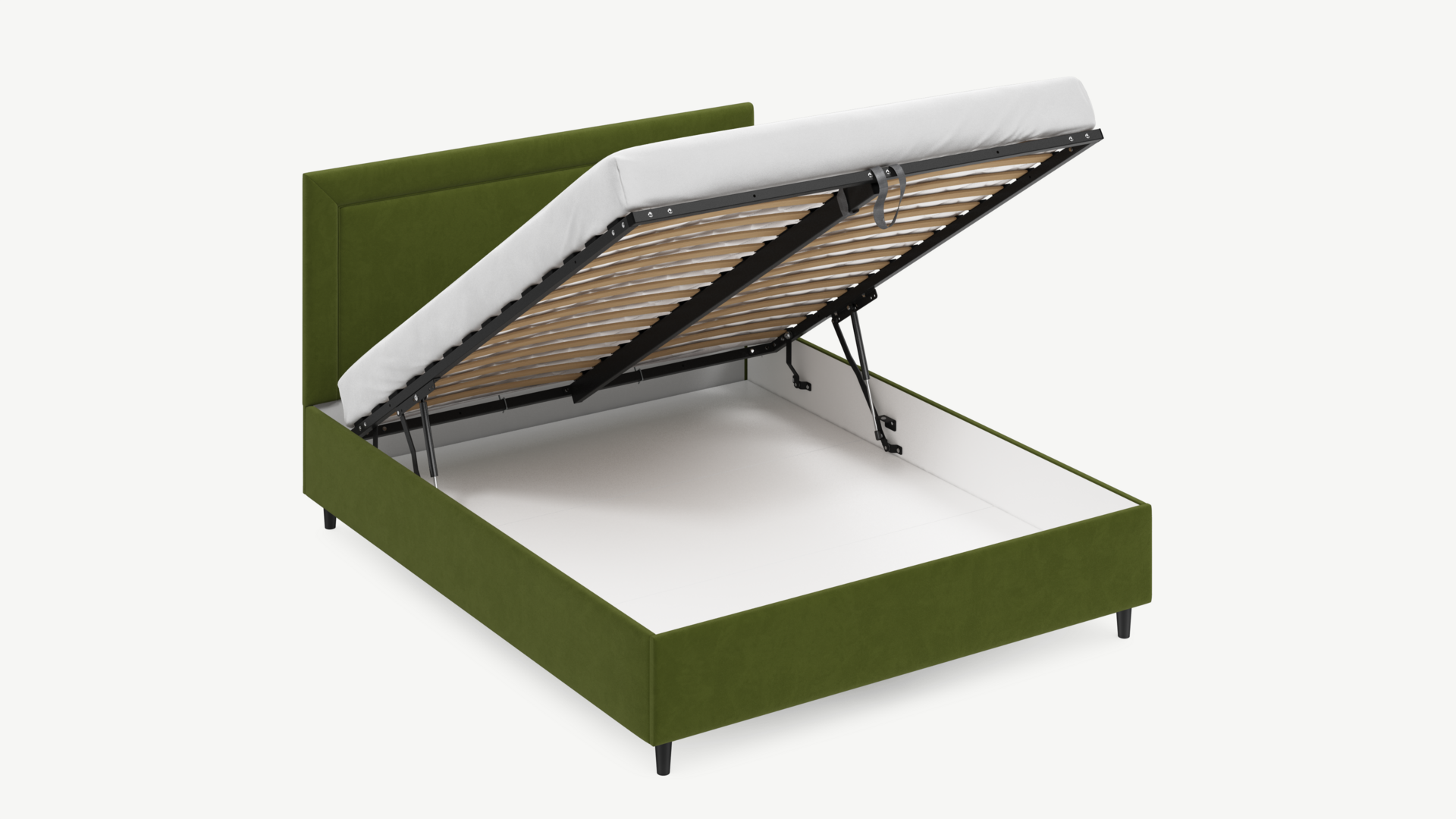 Регулируемый подъемный механизм с газовыми амортизаторами позволяет плавно и бесшумно поднимать и опускать спальное место.