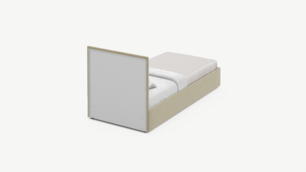 Кровать MOON FAMILY 1258 производит впечатление прежде всего искусно решенным изголовьем: творческий подход к обивочному материалу гарантирует притягательность образа, а намеренно простые формы дизайна становятся идеальной подсветкой «спецэффектов».