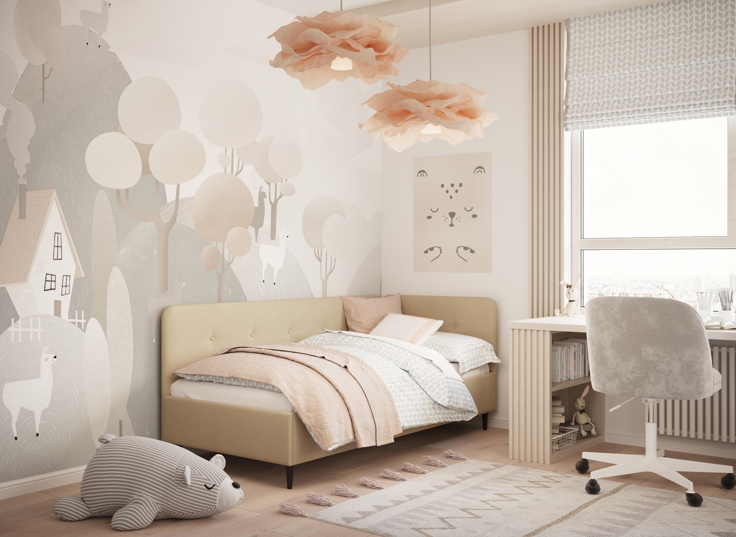 В подростковой комнате эта кровать станет стильным акцентом окружающего интерьера и возьмет на себя роль удобной кушетки для друзей, зашедших в гости.