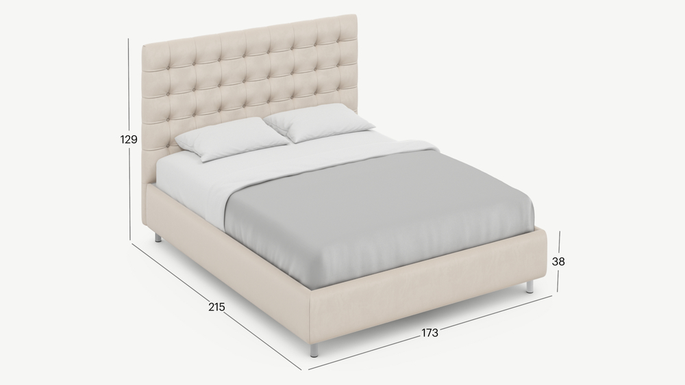 Дизайн MOON 1155 излучает обаяние и роскошь. Центральный элемент кровати, оформленный каретной стяжкой, безупречно сочетается с лаконичной геометрией царг, создавая впечатляющий рельеф. Изголовье респектабельно воплощает идею аристократической элегантности: просыпайтесь и засыпайте, подобно монаршим особам!